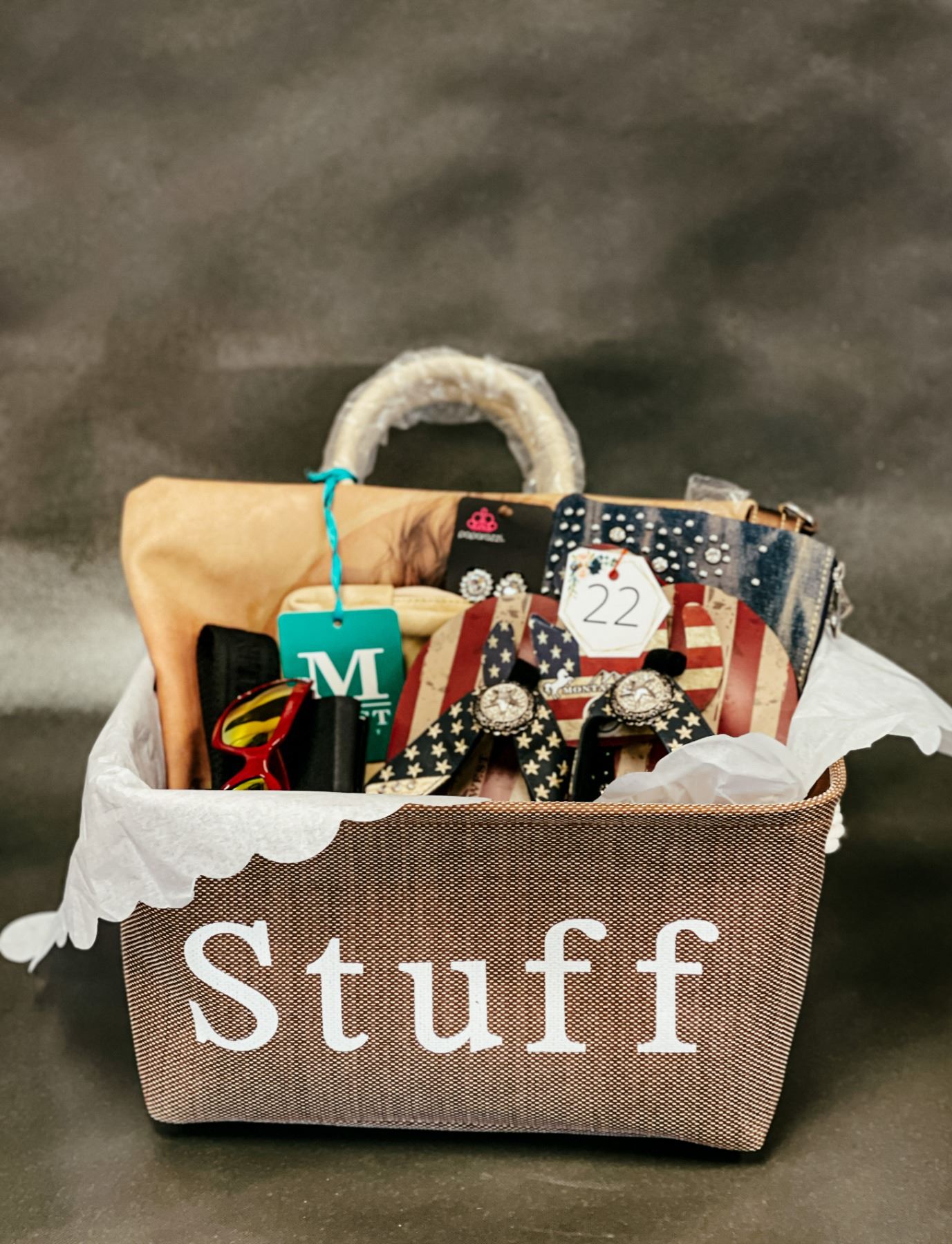 Horse Computer bag, American Flag Sunglasses, American Flag Flip flops, Tan Wallet, Paparazzi earrings, purse, kids jewelry.